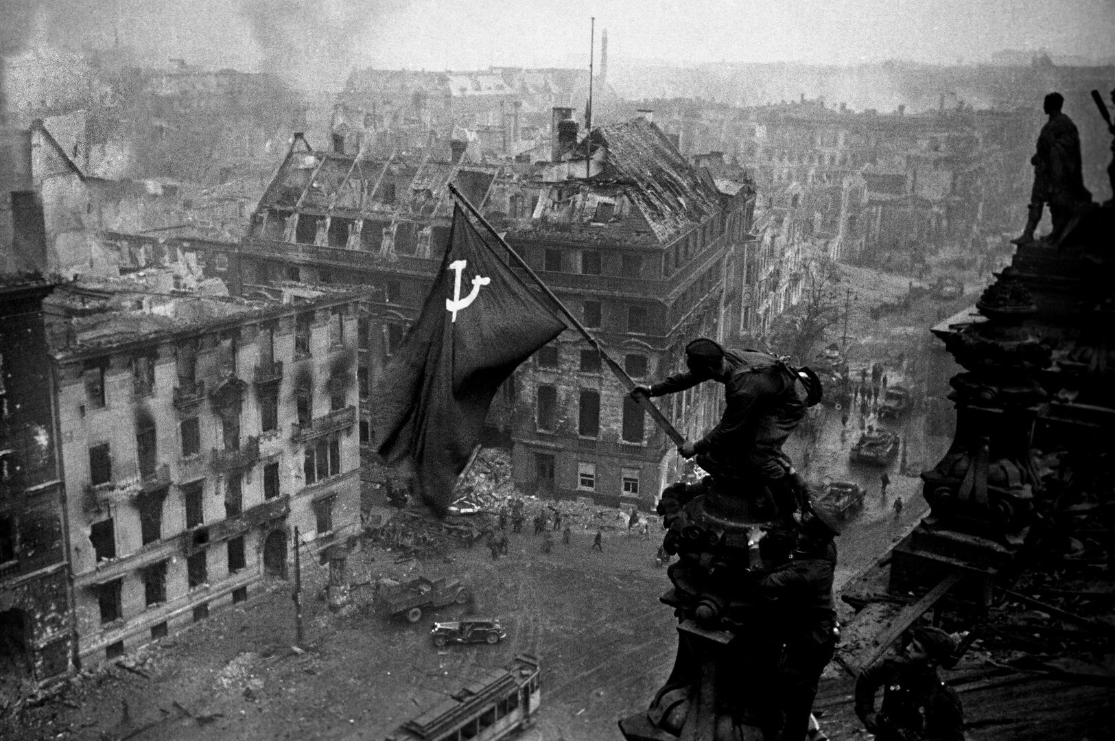 Na manhã de 1º de maio, os soldados da 150ª Divisão do Exército Vermelho apressaram sua bandeira na cúpula do edifício, mas os combates no Reichstag duram mais um dia e somente na noite de 2 de maio a operada do Reichstag se rende.