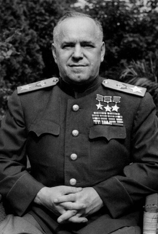 Quatro vezes agraciado com o título de Herói da União Soviética e duas vezes condecorado com a Ordem da Vitória, ficou conhecido como o "Marechal da Vitória".