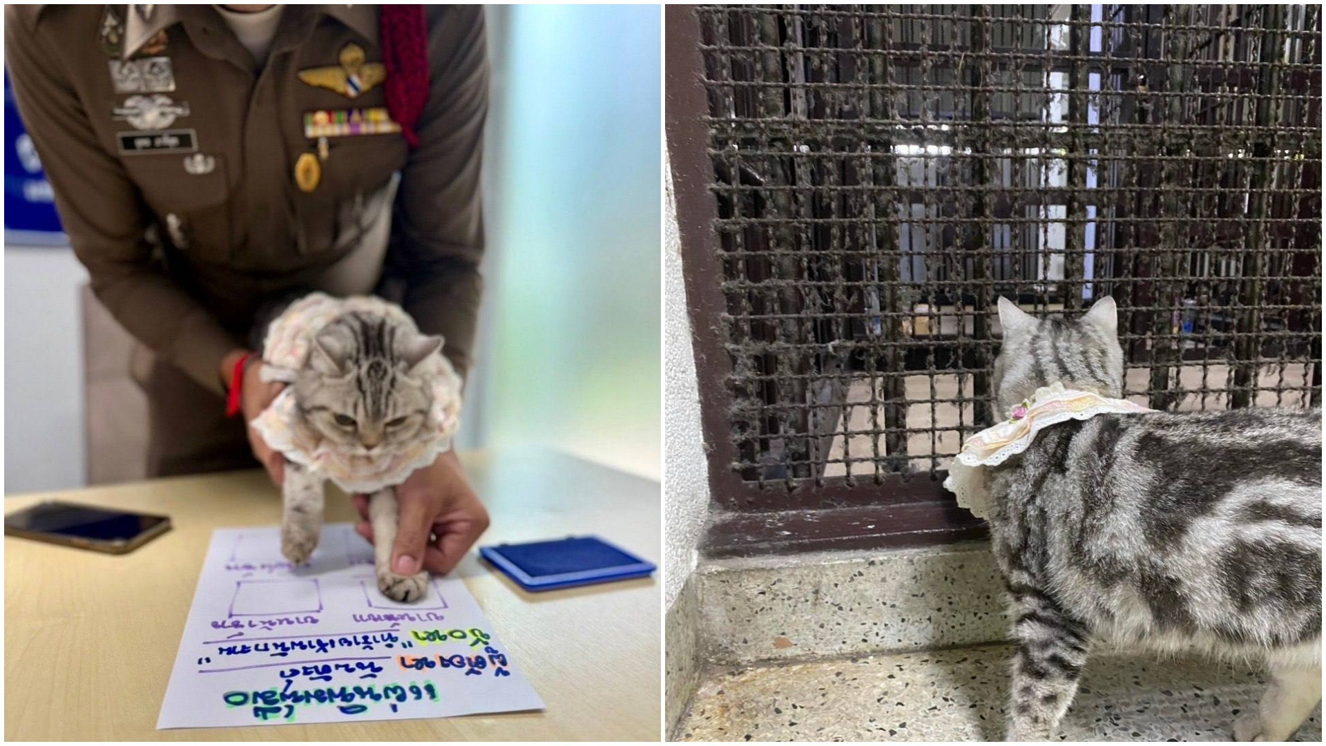 Pakeesuk levou a gata para casa, montou um espaço com comida, areia e brinquedos. "Ela está de boa vida, os policiais são as verdadeiras vítimas", brincou.