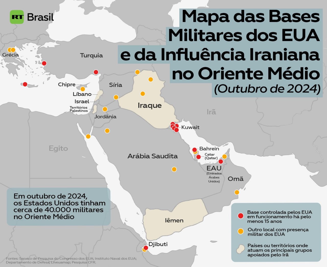 Os EUA mantêm cerca de 40 mil soldados distribuídos em mais de uma dezena de países da região, com o objetivo principal de conter o Irã, segundo o Conselho de Relações Exteriores.