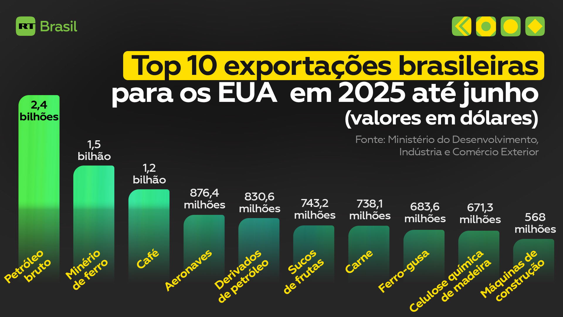 A lista dos principais produtos exportados pelo Brasil aos Estados Unidos até junho de 2025 revela o papel-chave do país sul-americano, cobrindo setores estratégicos.