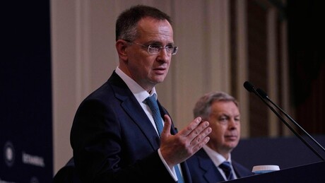 O líder da delegação russa, Vladimir Medinsky apresentou à imprensa um balance sobre as negociações realizadas nesta quarta-feira (23) com representantes ucranianos, no Palácio Ciragan, na cidade turca de Istambul.