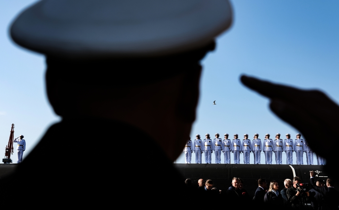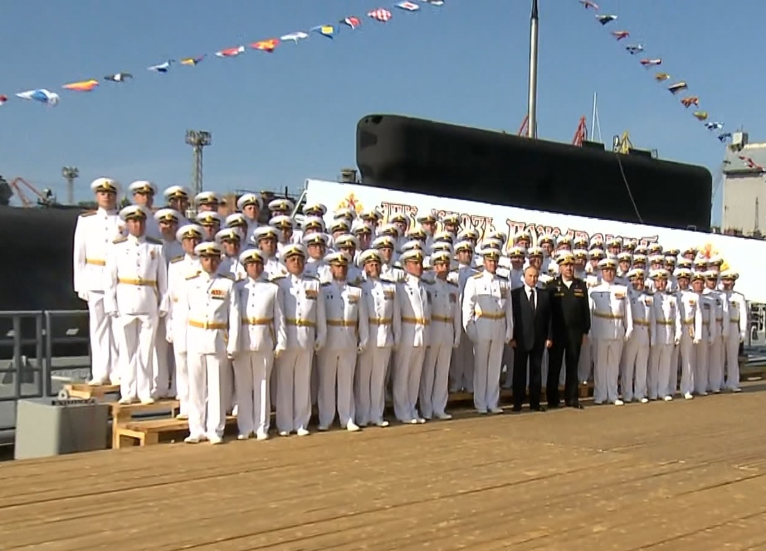 Vladimir Putin presidiu, nesta quinta-feira, a cerimônia de hasteamento da bandeira da Federação Russa no novo submarino nuclear estratégico Knyaz Pozharsky. O evento foi realizado na fábrica Sevmash, um dos principais centros de construção naval do país, localizada na cidade de Severodvinsk, na província de Arkhangelsk, no noroeste da Rússia.