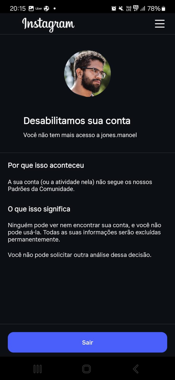 Um pouco depois, ele também compartilhou a notificação da desabilitação de sua conta no Instagram, também pertencente à empresa Meta*. "Só para registar. Como vocês sabem, a Meta derrubou minhas redes. Hoje divulguei nos stories do Insta que batemos mais de 102 milhões de visualizações nos últimos trinta dias. O insta já tinha 1 milhão e 80 mil seguidores e bateria 1,5 com o debate e a participação no Flow", se manifestou o comunista.