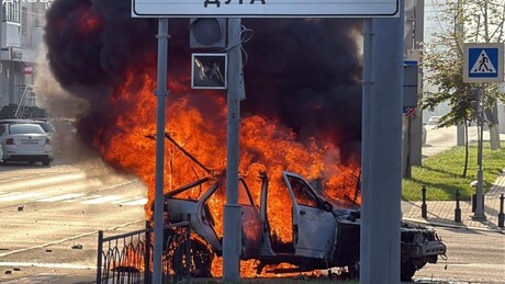 Além de ter deixado um carro com civis em chamas, o ataque ucraniano também teve como alvo um prédio governamental.