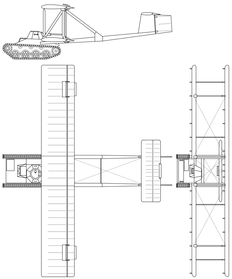 Levando em consideração que o veículo blindado, após seu deslocamento aéreo, deveria atuar em terra como um tanque comum, não havia a necessidade de um motor a parte para sustentá-lo em voo. Portanto, decidiu-se fabricar um planador de madeira que seria fixado temporariamente ao tanque e que se desprenderia dele ao aterrissar. O motor era totalmente desnecessário, já que se pretendia utilizar um avião militar para rebocar o tanque.