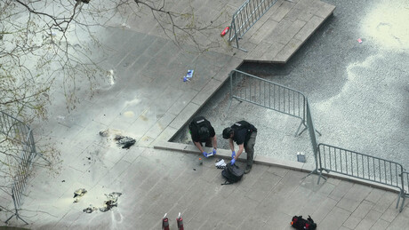 Fontes policiais disseram que o incidente envolveu um homem de 20 anos que possivelmente é um sem-teto. Ele estava sentado em um banco de praça quando, de repente, jogou seus pertences no chão e borrifou algo em si mesmo antes do início das chamas.