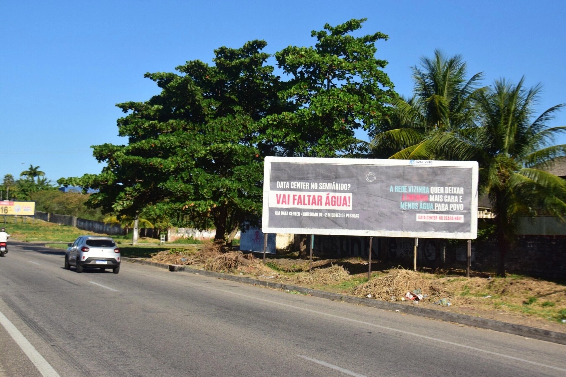 "Esse projeto traz tanto a questão do enfraquecimento dos instrumentos de proteção e do licenciamento ambiental, que já é uma prática do governo do estado do Ceará, quanto essa intensificação da insegurança hídrica e energética", critica Katley Ellen, da organização Engajamundo, que instalou um outdoor sobre o tema em Caucaia.