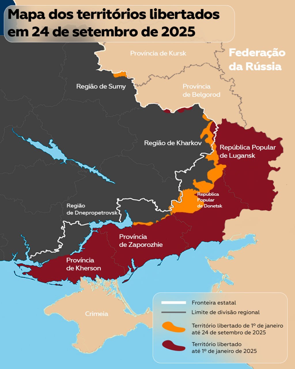 O ministério destacou os avanços do agrupamento Leste do Exército russo, que prosseguiu sua ofensiva contra as defesas do inimigo e liberou a localidade de Stepovoye, na região de Dnepropetrovsk.