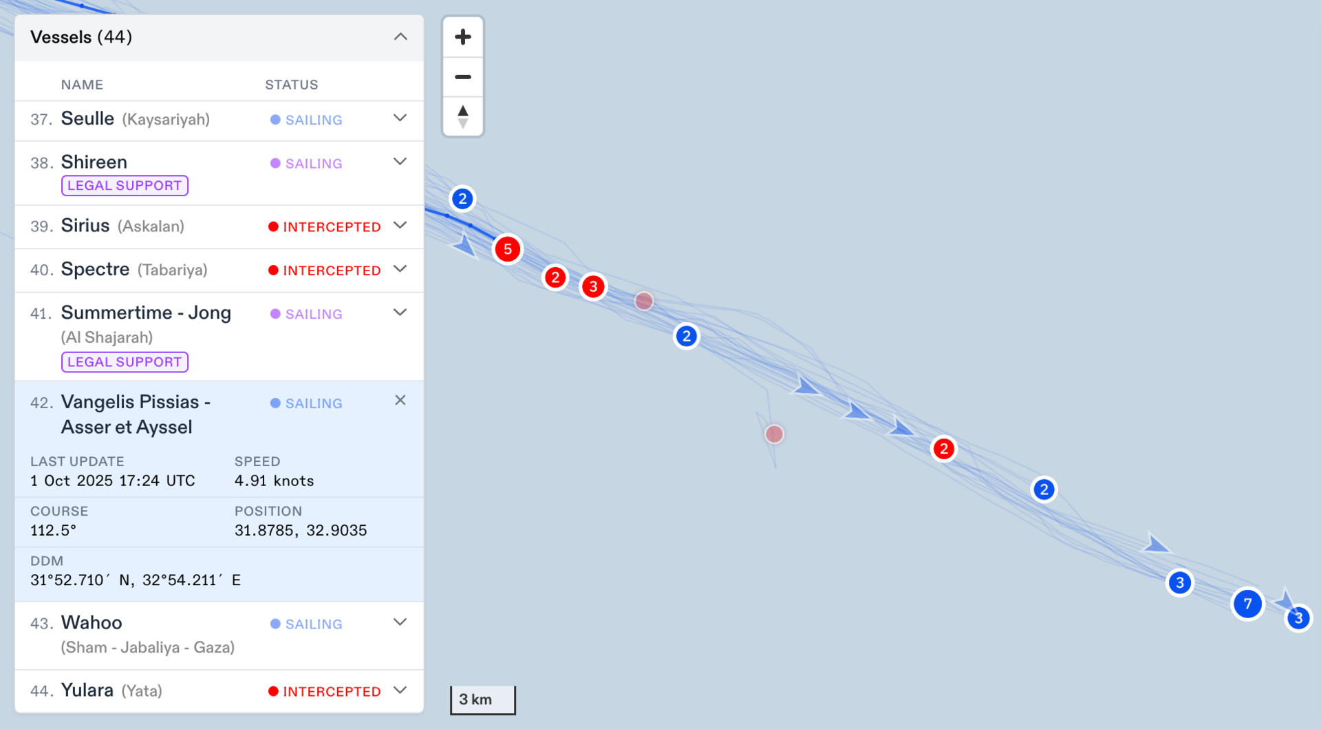 Antes da interceptação, a organização havia relatado a aproximação de mais de 20 embarcações não identificadas, o que indicaria um bloqueio naval. Em um áudio enviado horas antes, Thiago Ávila destacou que a missão era não violenta e buscava abrir um corredor humanitário para Gaza.