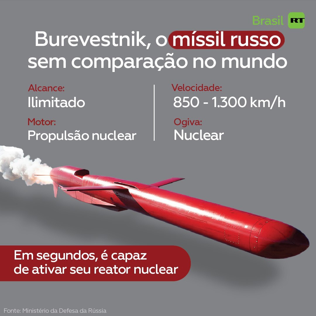 A Rússia concluiu recentemente os testes do míssil de cruzeiro de alcance ilimitado Burevestnik, com o presidente Vladimir Putin destacando que "trata-se de um produto único que ninguém mais possui no mundo".