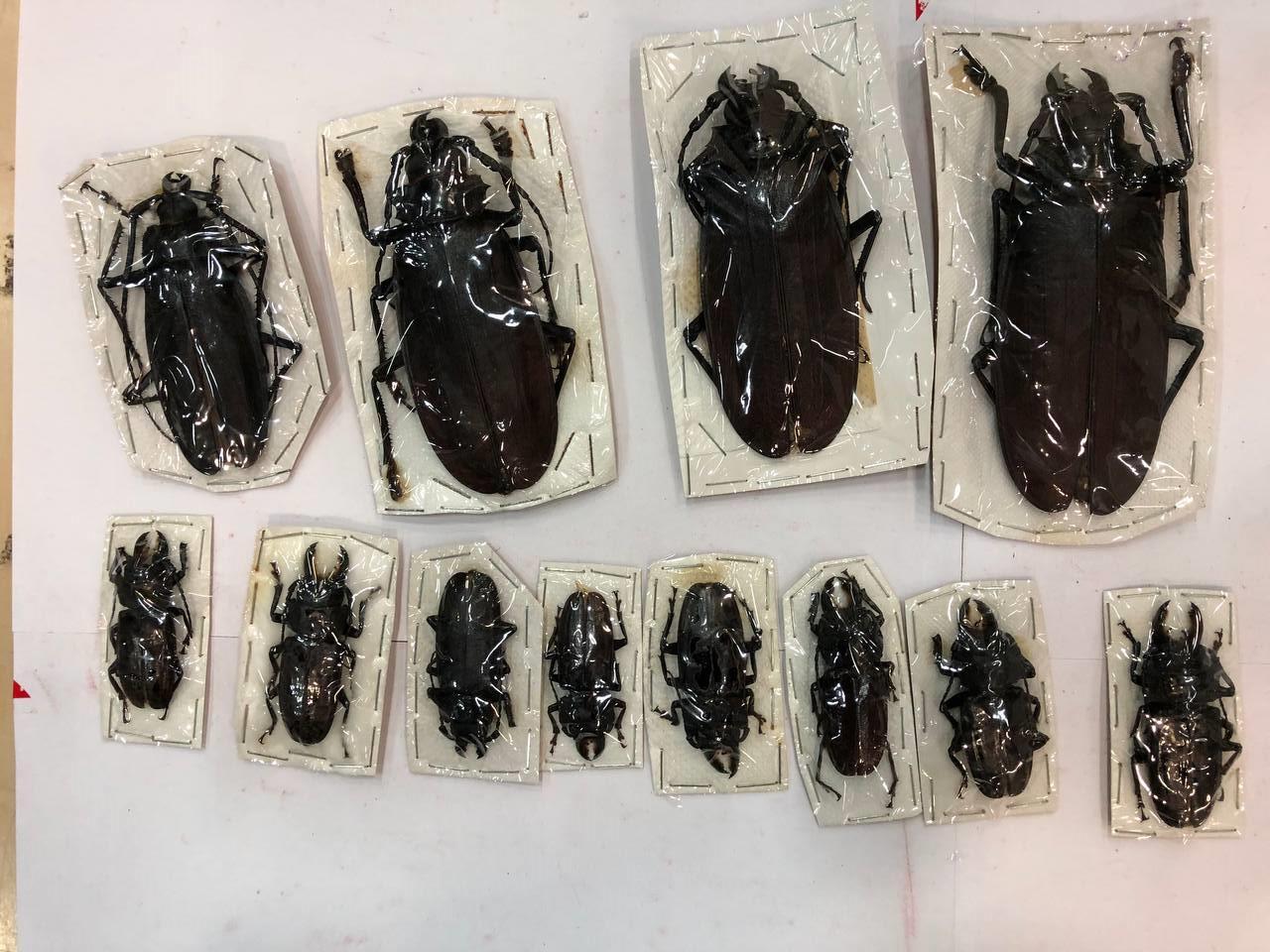 Segundo a perícia da alfândega, os besouros seriam espécimes muitos raros de insetos. Entre as espécies encontradas havia o maior besouro noturno do mundo, da família dos longicórnios, com quase 20 cm de comprimento, além de besouros‑bico‑de‑ferro e de rinoceronte, ambos da família dos coleotróbios.