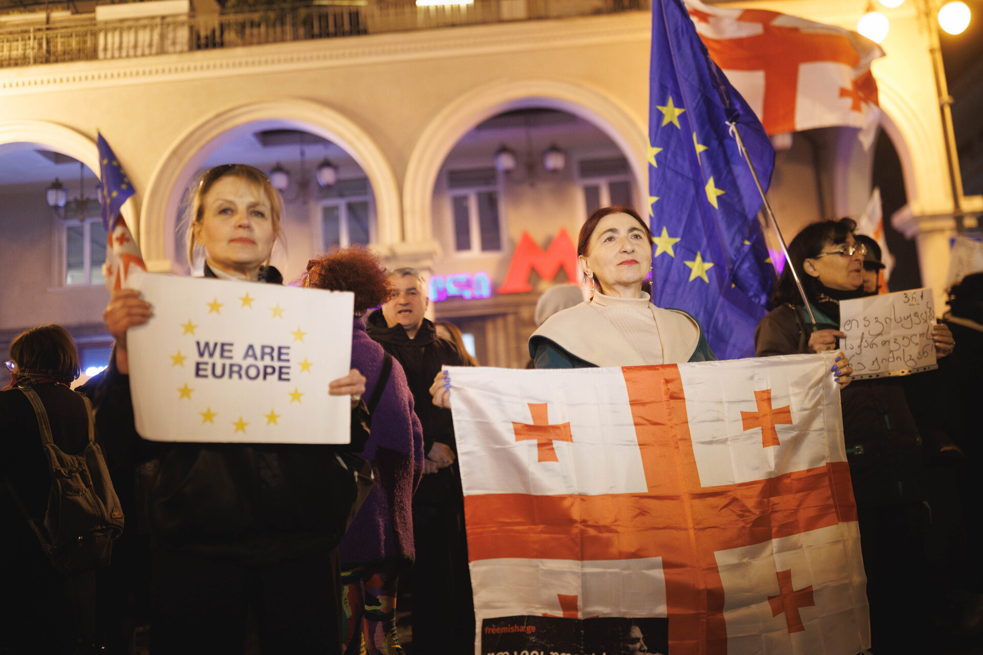 Protestos pró-europeus foram convocados na Geórgia após o anúncio da suspensão da adesão à UE em novembro de 2024, provocando mobilizações de "adesão moderada", de acordo com Ibragimov, com estimativas mais generosas indicando a participação de 3 mil manifestantes. A mídia ocidental passou a acusar as autoridades georgianas de usar armas químicas da Primeira Guerra Mundial para reprimir manifestantes, cujas alegações sem provas e republicadas neste mês pela emissora britânica BBC levaram o governo georgiano a anunciar planos de processar o canal por difamação.