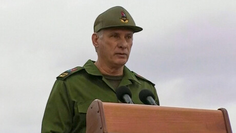 Visivelmente emocionado, diante da Tribuna Anti-imperialista instalada em frente à embaixada dos EUA em Havana, o presidente cubano lembrou a bravura dos militares de seu país.