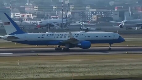 O Air Force Two chegou ao Aeroporto de Zurique pouco antes das 12h45, horário local, depois que o Air Force One relatou dificuldades técnicas que atrasaram a chegada do presidente.