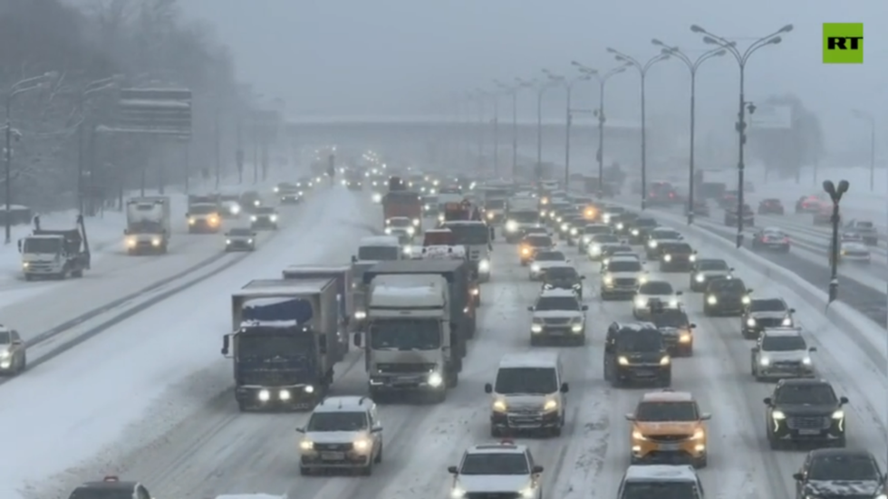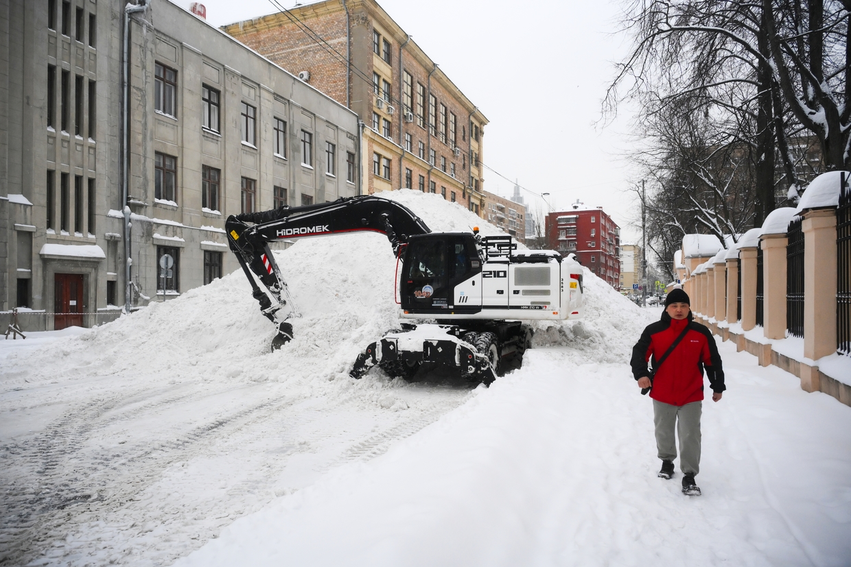 Moscou e a região metropolitana permanecem sob a influência de um ciclone intenso, responsável pelas fortes e contínuas nevascas.