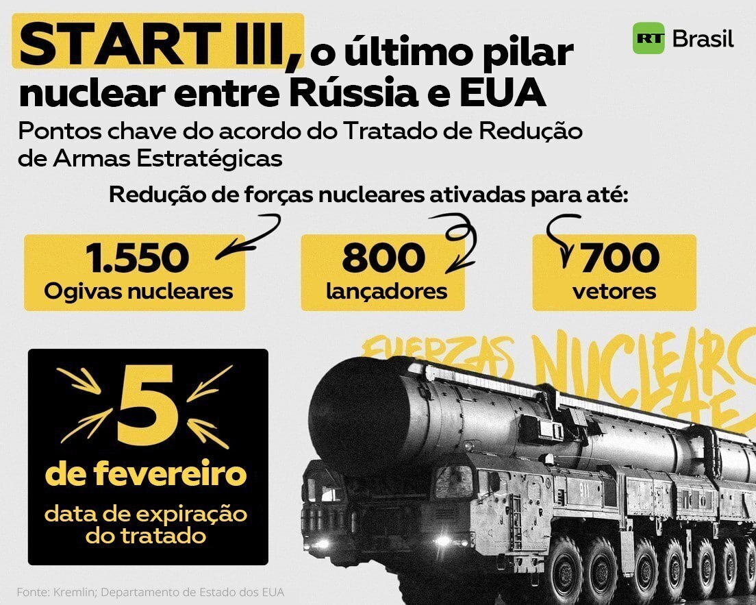 O Tratado de Redução de Armas Estratégicas, também conhecido como START III ou Novo START, foi assinado por Rússia e EUA em 8 de abril de 2010 e prorrogado sem condições prévias por cinco anos, em fevereiro de 2021.