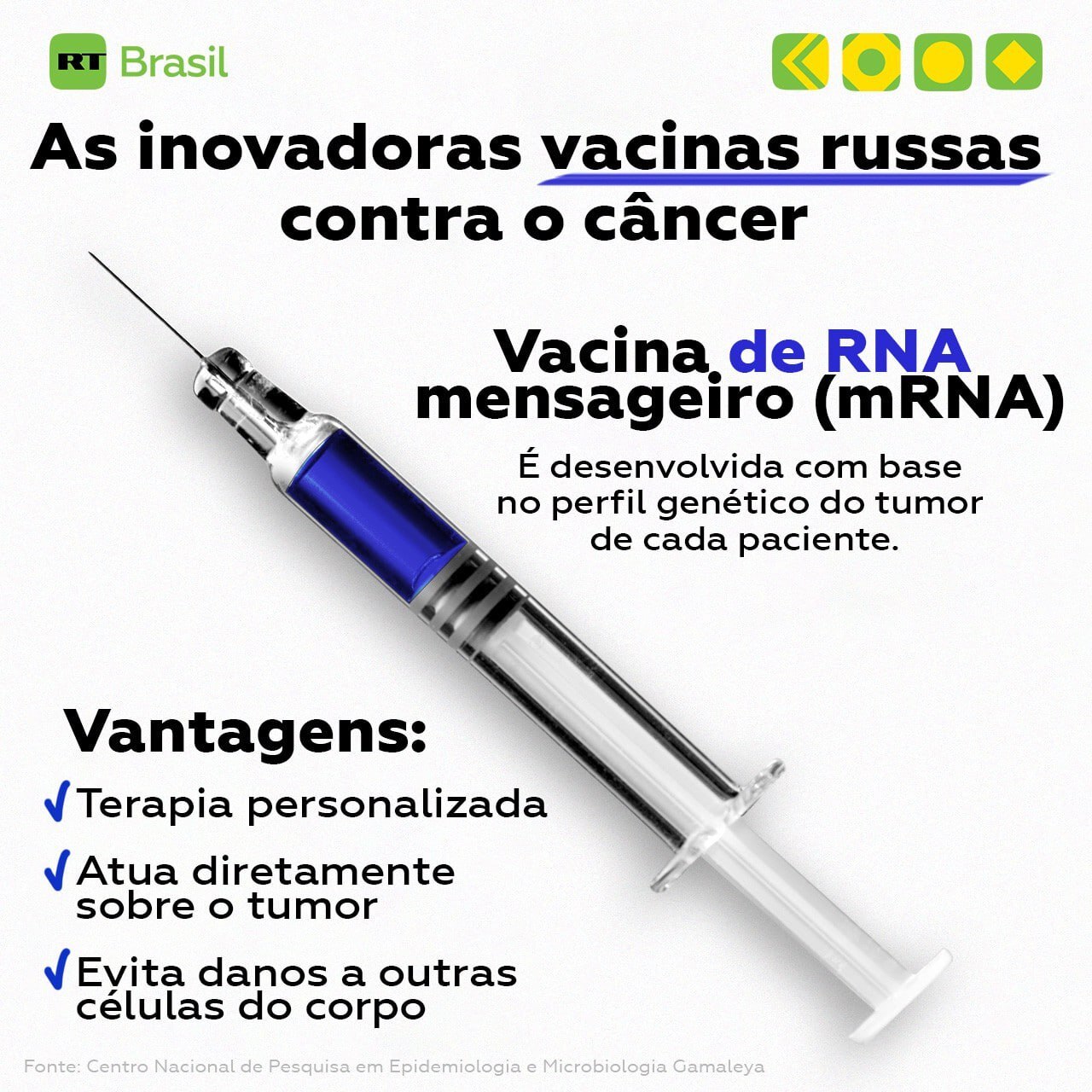 Um dos marcos recentes é a autorização concedida pelo Ministério da Saúde da Rússia ao Centro Nacional de Pesquisa Médica Oncológica Blokhin para o uso da vacina de mRNA Neovac-RONTs. Fruto de uma colaboração entre o Centro Gamaleya e o Centro Nacional de Pesquisa Radiológica Médica da Rússia, este medicamento é destinado ao tratamento do melanoma cutâneo a partir de estágios intermediários do tumor, sendo administrado como terapia adjuvante após a remoção cirúrgica das metástases.