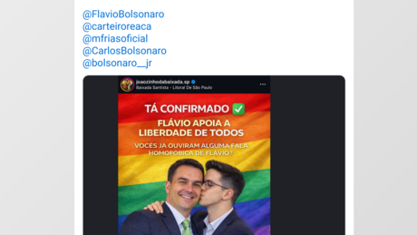 A postagem encoraja usuários a marcar o perfil de um membro da comunidade LGBT* para conhecer "o futuro presidente do Brasil", argumentando que Flávio não tem falas públicas de teor homofóbico e supostamente "apoia a liberdade de todos".