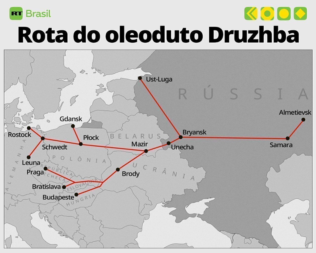 - Kiev atribuiu a suspensão do funcionamento do oleoduto a danos causados por supostos ataques russos, enquanto Hungria e Eslováquia acusaram as autoridades ucranianas de chantagem política em retaliação à postura independente de Budapeste e Bratislava sobre o conflito russo-ucraniano.