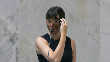Durante o discurso, a parlamentar afirmou que realizaria um "experimento social" e iniciou a aplicação da tinta enquanto questionava se, ao mudar a aparência, passaria a ser vista de outra forma. Em seguida, declarou que, como mulher branca, "mesmo me pintando de negra eu não posso cuidar das pessoas que sofrem o racismo".