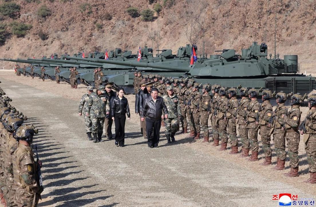 Kim Jong-un visitou a Base de Treinamento nº 60 de Pyongyang, onde assistiu a exercícios táticos de unidades de infantaria e blindados para uma ofensiva conjunta.