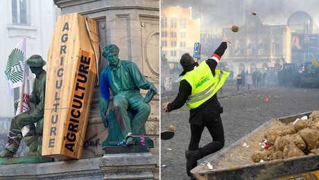 Entre 10 mil e 15 mil agricultores se manifestaram em Bruxelas contra a política da União Europeia relativa ao setor e contra a assinatura do acordo de livre comércio com o Mercosul.
