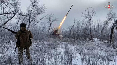 De acordo com um vídeo divulgado pelo Ministério da Defesa da Rússia nesta quarta-feira (4), o sistema lança-chamas pesado TOS-1A Solntsepiok atingiu e destruiu uma posição fortificada de forças ucranianas nas proximidades de Krasnoarmeisk, usando mísseis termobáricos.