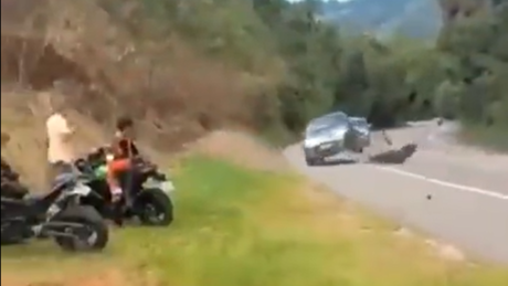 IMAGENS FORTES: Motociclista morre após perder o controle, cair e bater em carro na contramão