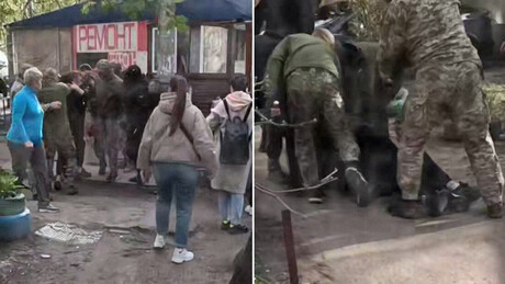 As imagens mostram um grupo de recrutadores ucranianos em Odessa usando spray de pimenta contra uma mulher que tentava impedir o alistamento forçado de um homem. No vídeo, pelo menos oito militares tentam levar um homem à força enquanto a mulher tenta intervir, quando eles disparam o gás em seus olhos, fazendo ela cair gritando "Meus olhos!". O homem é então levado a uma van, enquanto populares tentam socorrer a mulher, aconselhando a lavar os olhos com leite.